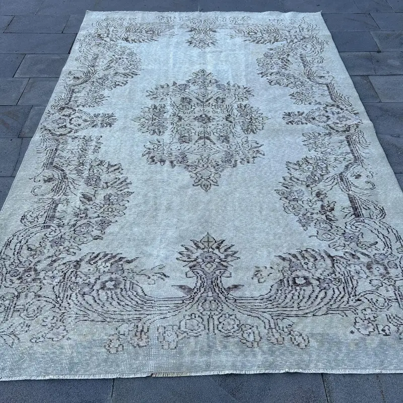 Zarif Bej ve Yeşil Halı, 6,1x9,2 ft Hayvan Baskı