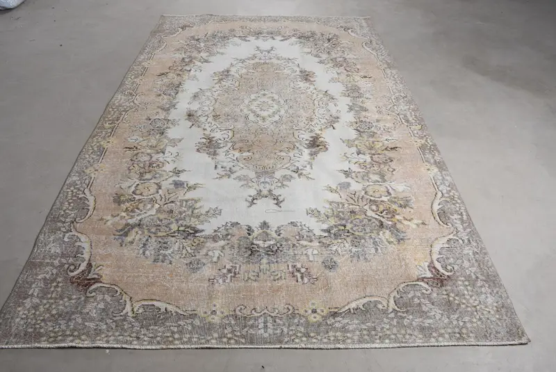 5,9x10 ft Halı, Turuncu ve Bej Çiçek-Geometrik Tasarım