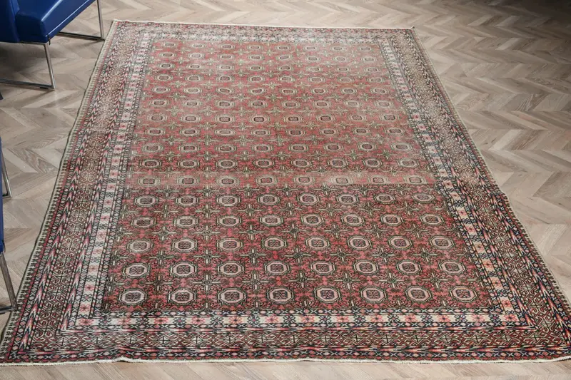 Pembe Fas Halısı, 6,3x9 ft Zarif Kırmızı Vurgulu