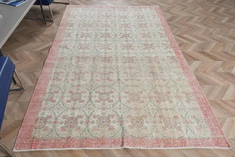 Zarif Bej ve Kırmızı Çiçekli Halı, 5,3x8,3 ft Şık Dekor
