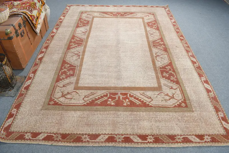 Zarif Bej Oryantal Halı, Kırmızı Desenli 6,5x9,3 ft