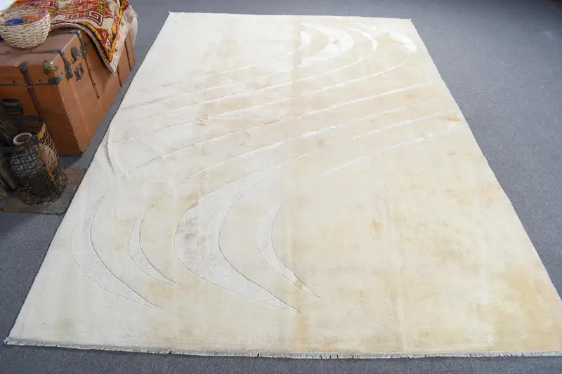 Sarı Bej Çiçekli Halı, 6,3x9,3 ft Şık Dekor