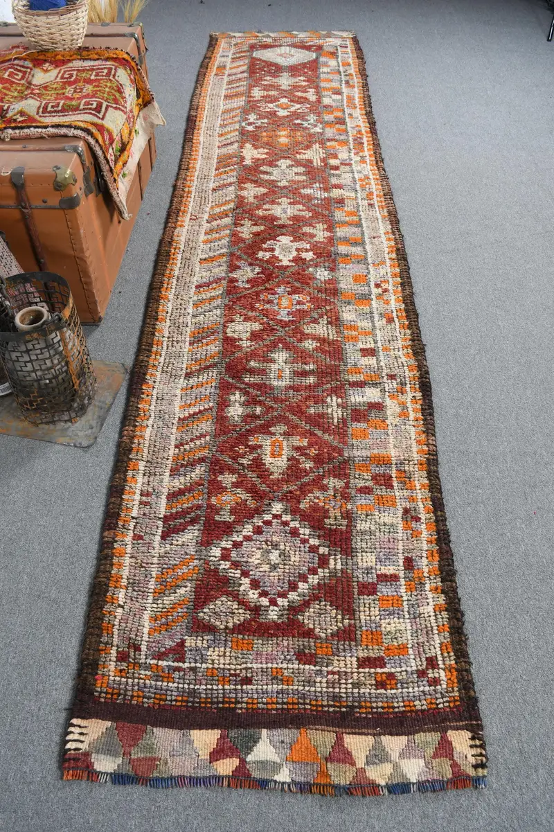 Yeşil Desenli Mor Halı, 2,5x11,7 ft Zarif Dekor