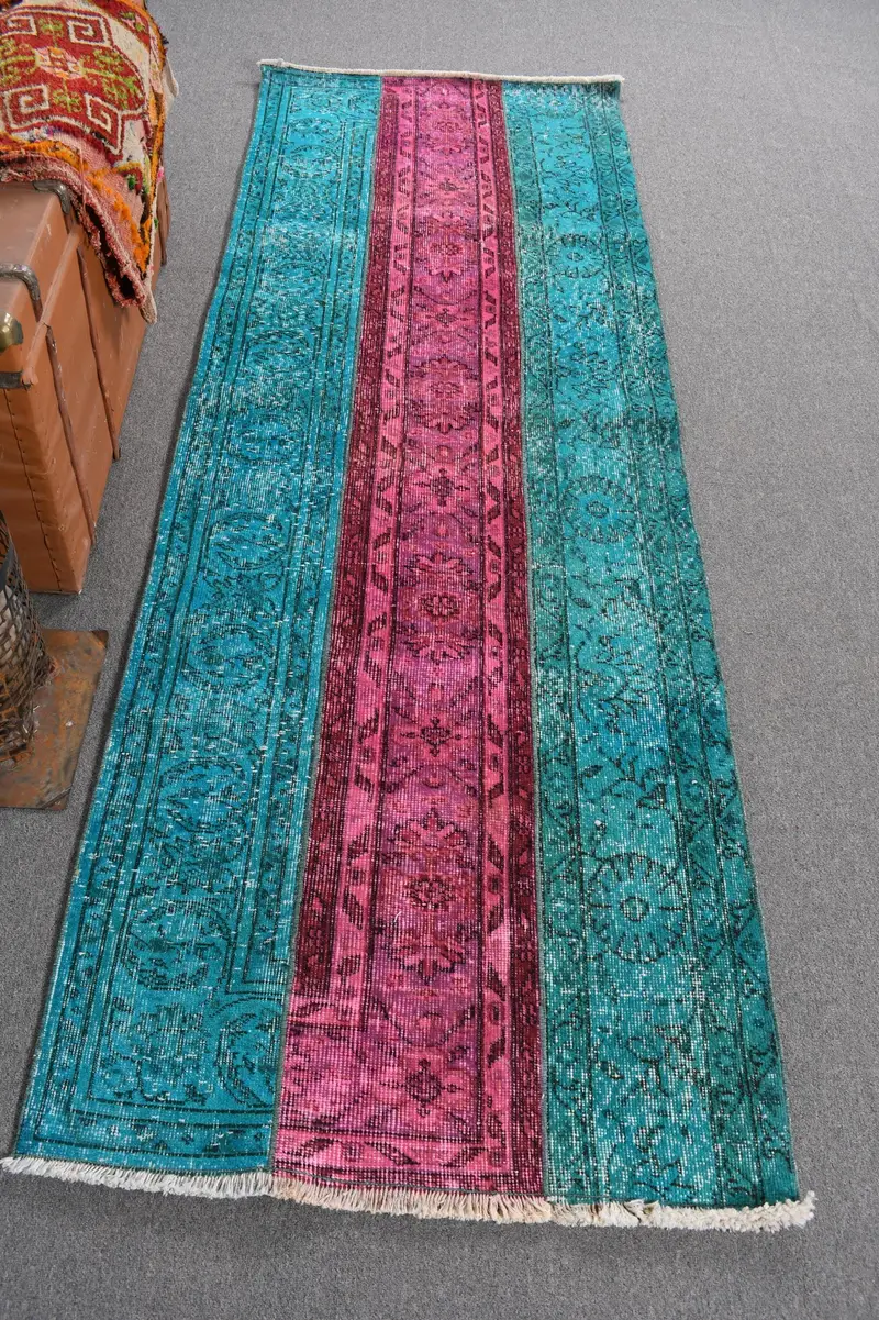 Zarif Yeşil Halı, 2,8x8,2 ft, İnce Kırmızı Vurgulu