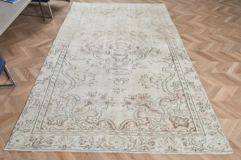 Zarif Bej ve Kahverengi Halı, 5,4x8,5 ft Geometrik Çiçek