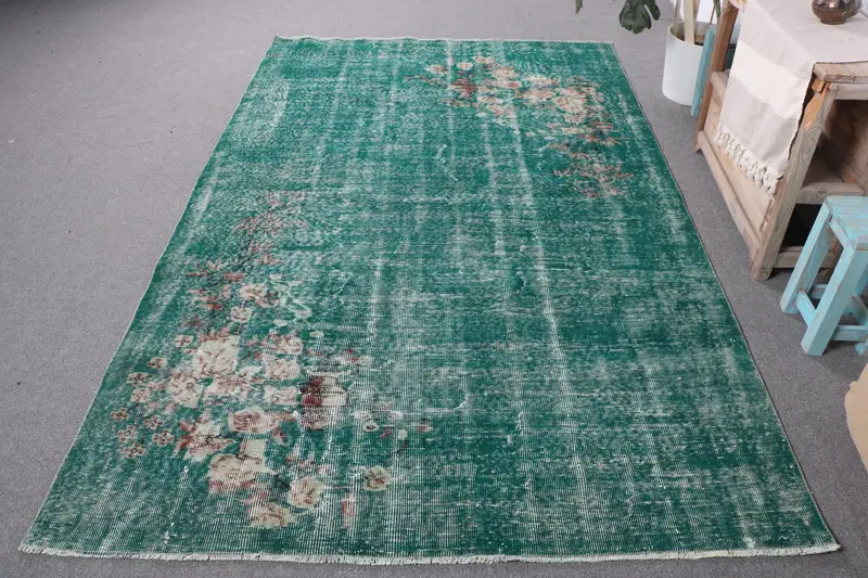 Zarif Yeşil Soyut Halı, 5,4x8,5 ft Şık Dekor