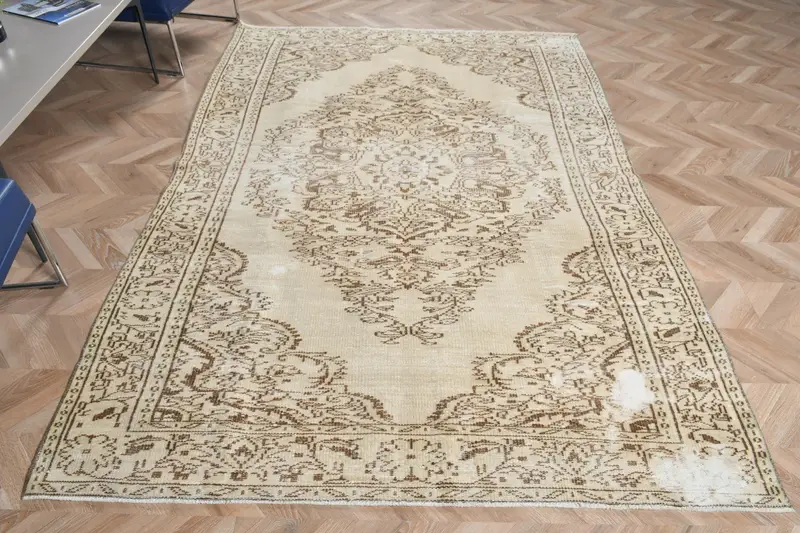 Zarif Bej Halı, 5,7x8,5 ft Botanik Tasarım