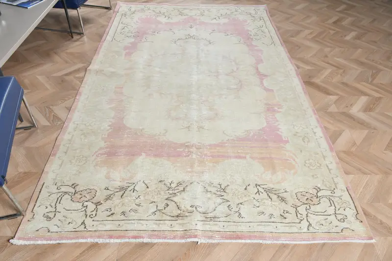 Bej ve Pembe Patchwork Halı, 5,6x9,5 ft Zarif Dekor