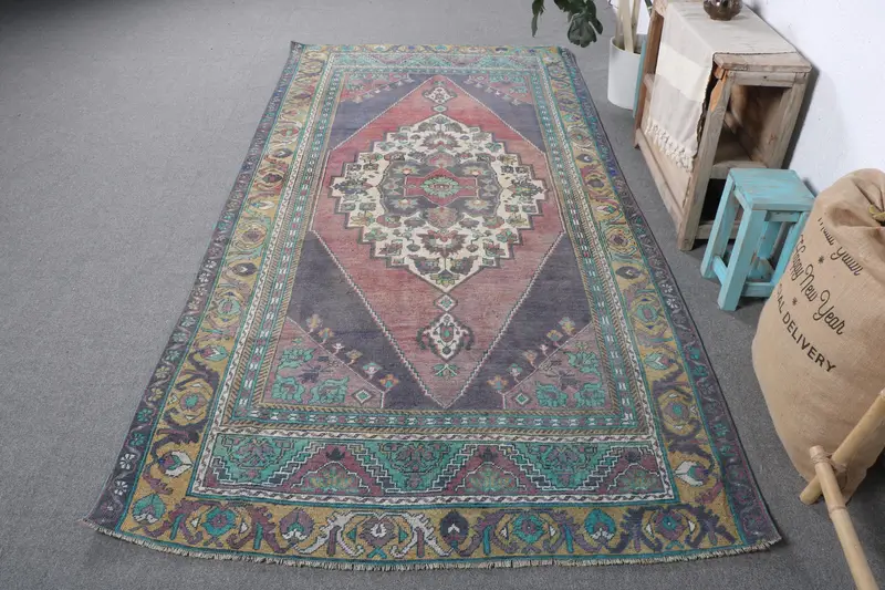 Yeşil ve Mor Patchwork Halı, 4,9x9,8 ft Zarif Dekor