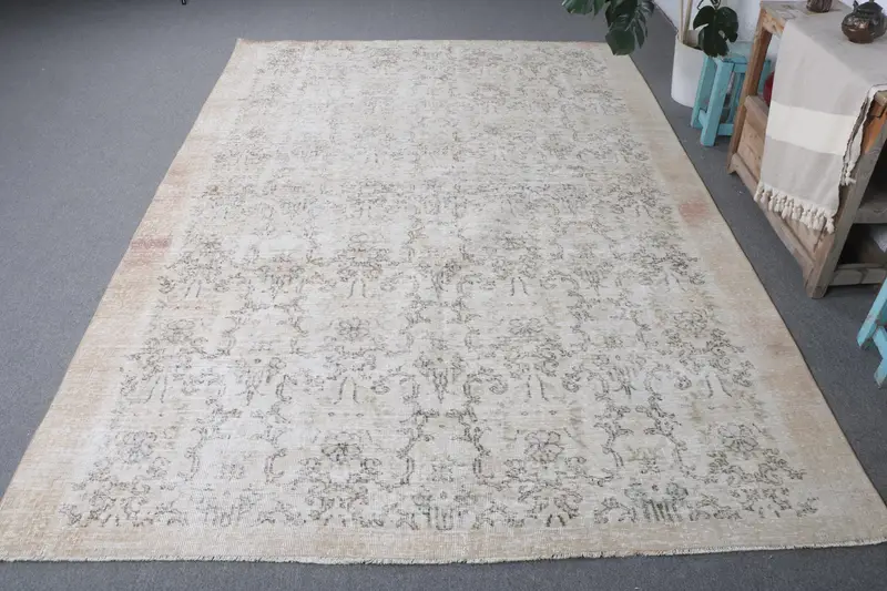 Zarif Bej ve Turuncu Halı, 6,5x9,4 ft Şık Kareli Tasarım