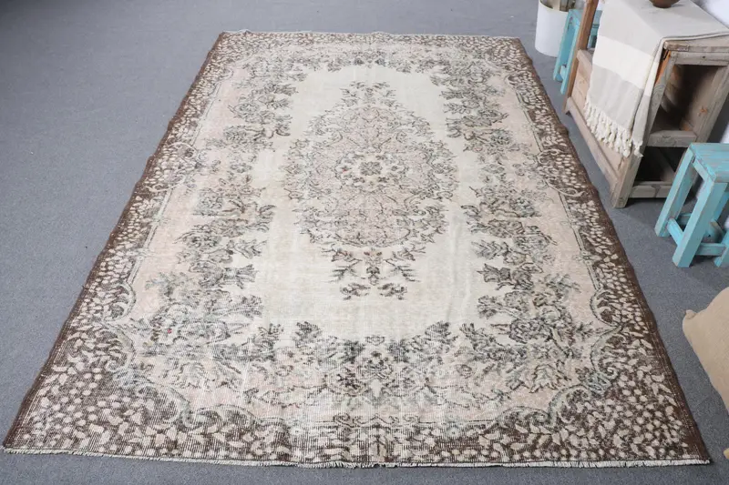Bej Ombré Halı, 5,7x8,8 ft Zarif Ev Dekoru