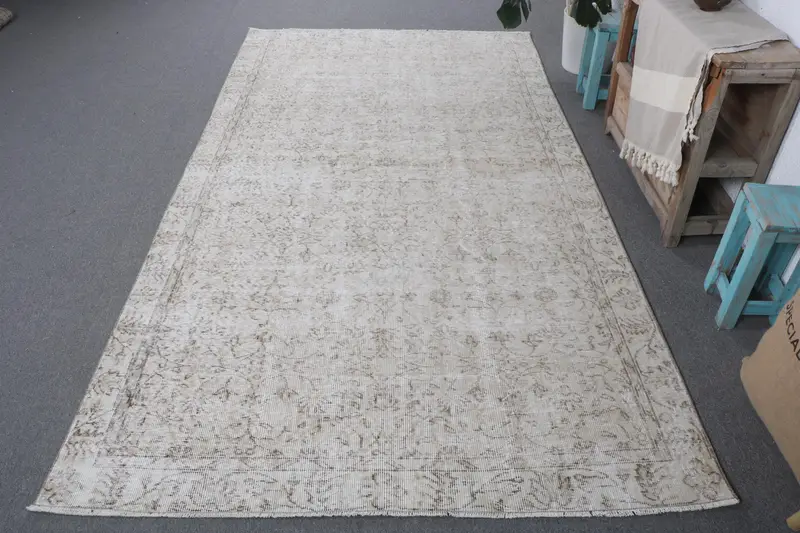 Zarif Bej Çiçekli Halı, 5,1x9,1 ft Şık Dekor