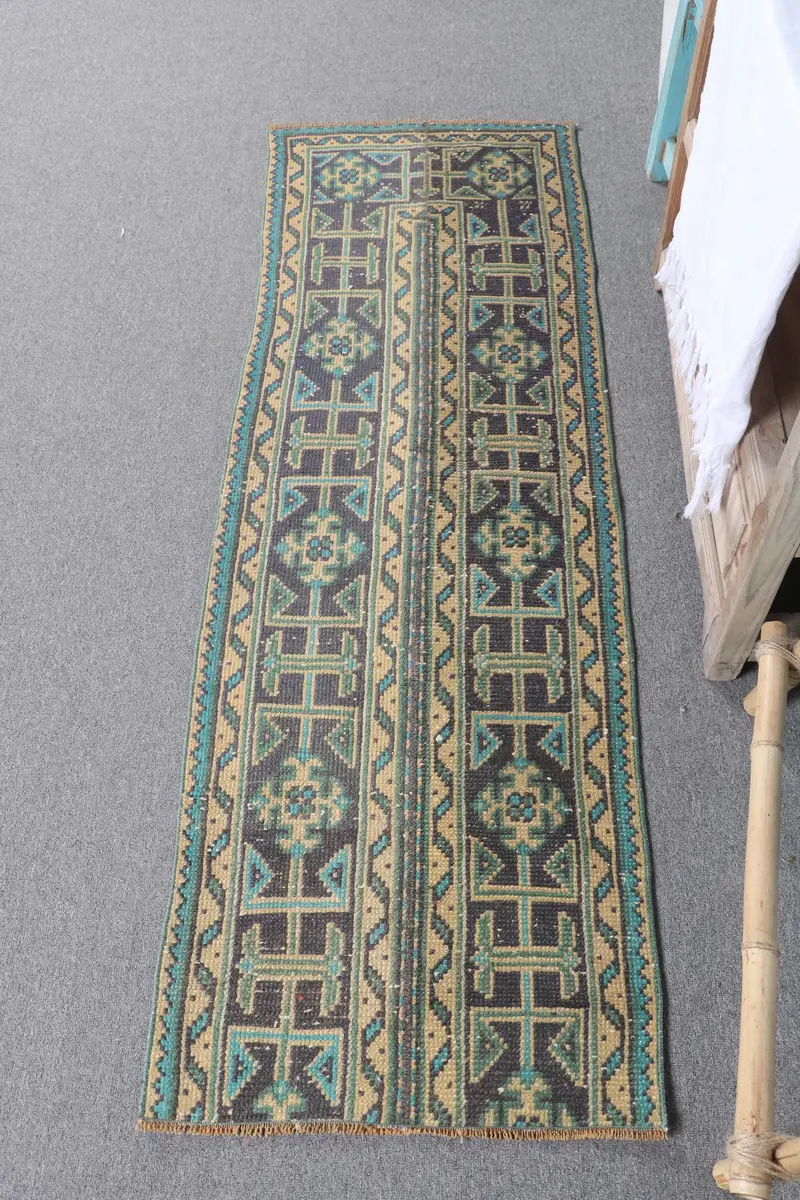 Mavi ve Yeşil Halı, 1,8x5,7 ft Puantiyeli Tasarım