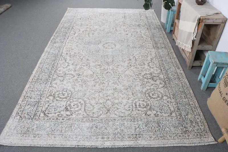 Zarif Bej ve Mavi Halı, 5,7x9,7 ft Soyut Tasarım