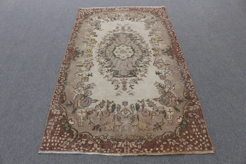 Kahverengi Oryantal Halı, 6.6x6.63 ft Bej Vurgulu