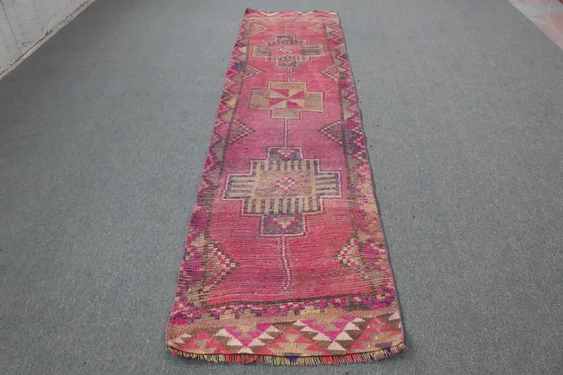 Pembe ve Mavi Çiçekli Halı, 2,56x10,53 ft Şık Dekor