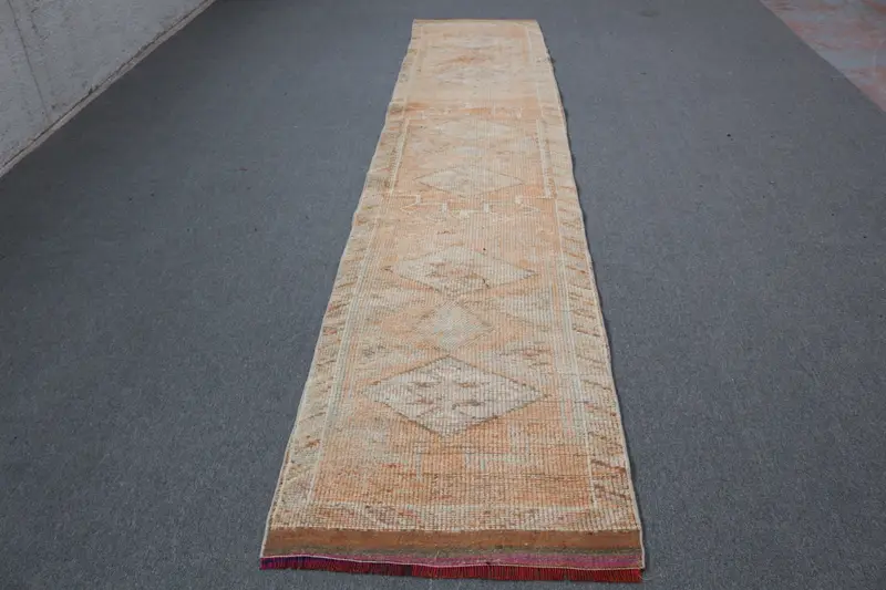 Turuncu, Bej Çiçekli Halı, 2,66x13,09 ft