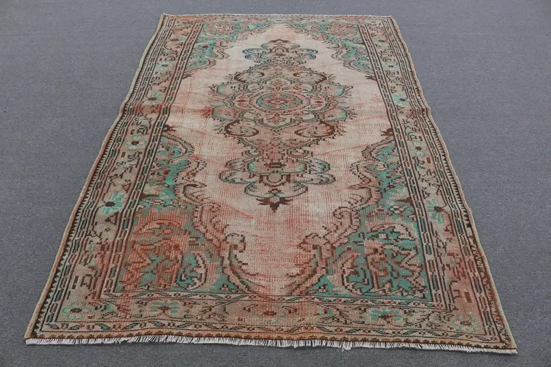 Kahverengi Oryantal Halı, 7,8x7,84 ft Yeşil Vurgulu