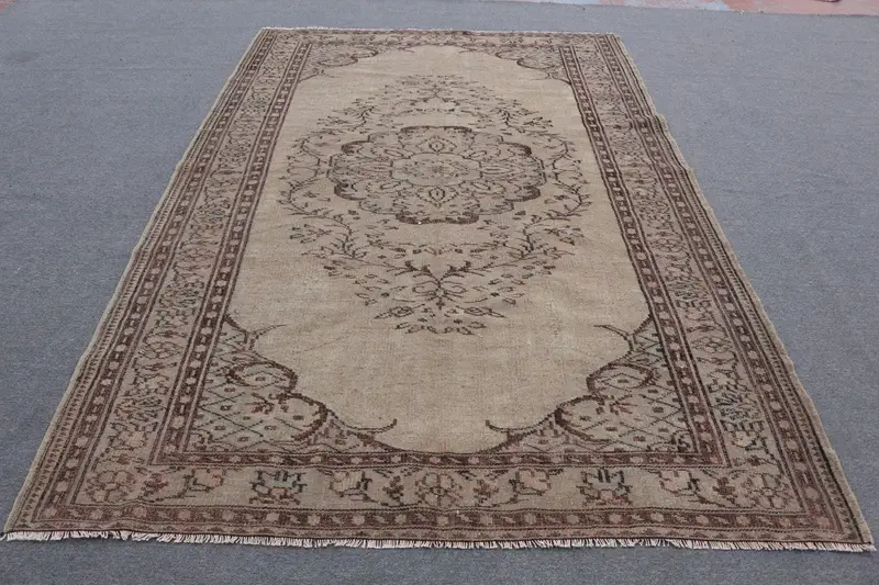 Kahverengi ve Yeşil Halı, 6x9 ft Bordürlü Tasarım