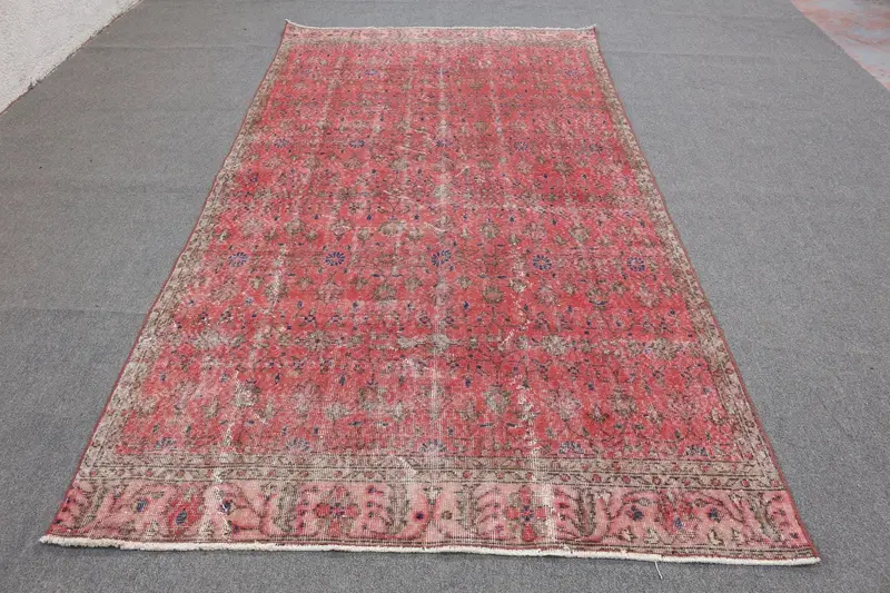 Kırmızı Fas Halısı, Mavi Desenli 5,2x10,3 ft