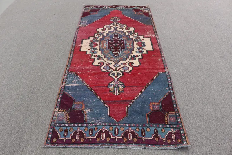 7,6x7,61 ft Kırmızı Oryantal Halı, Zarif Mavi Vurgular