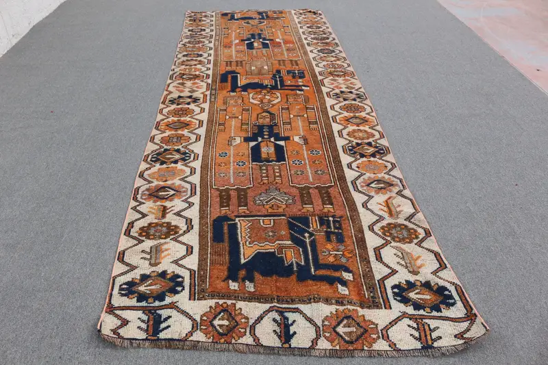 Turuncu Çiçekli Halı, 4,3x11,58 ft Zarif Dekor