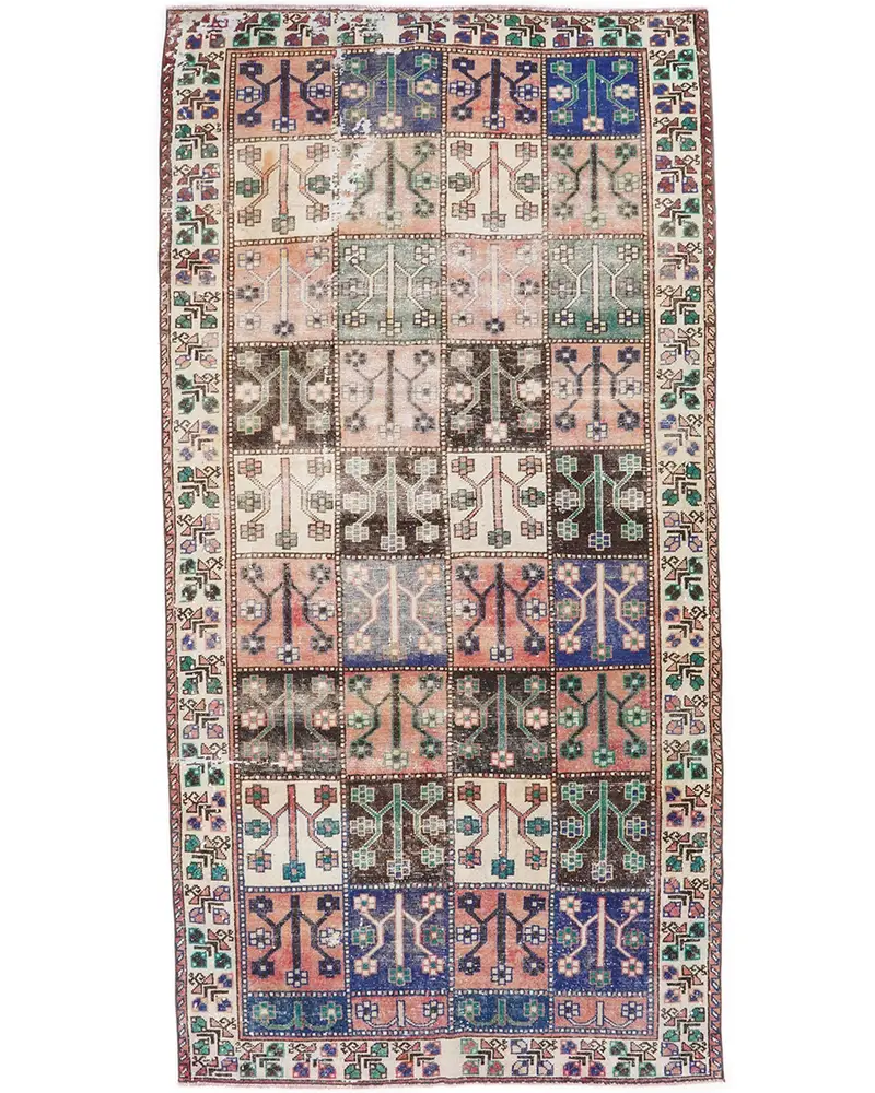 Zarif Kahverengi ve Mavi Halı, 4,7x9,2 ft İran Desenli