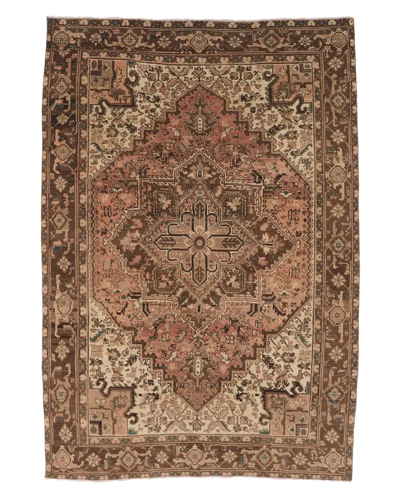 Kahverengi, Bej Kareli Halı, 6,4x9,5 ft Chic Elegance