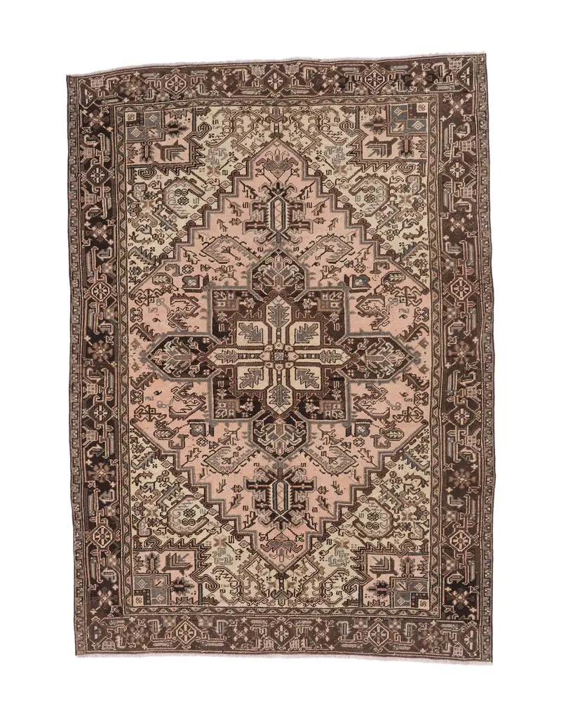 Kahverengi ve Pembe Halı, 6,3x9,1 ft Botanik Tasarım