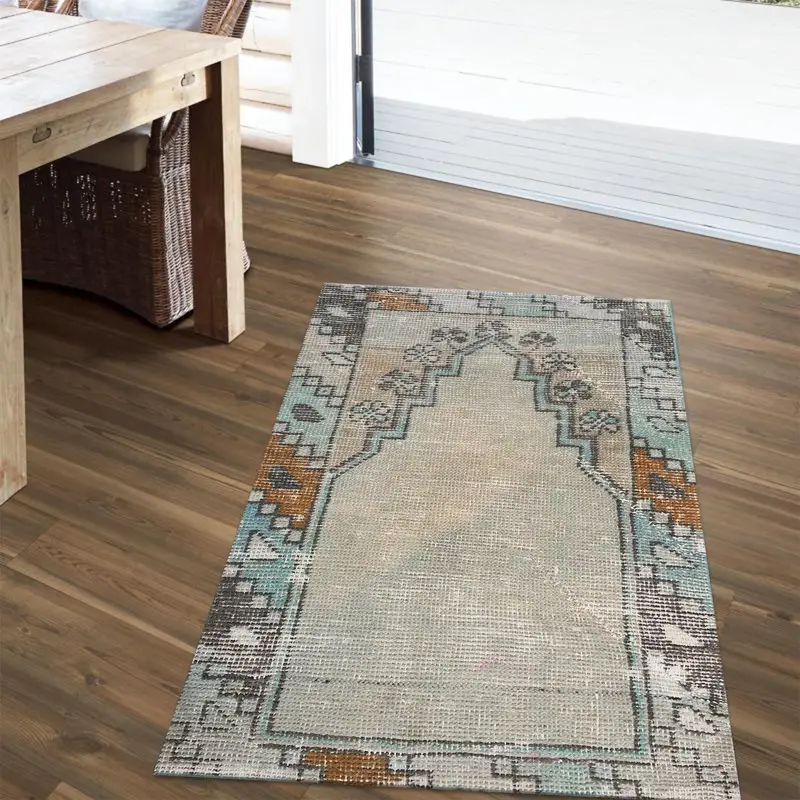 Yeşil & Bej Kilim Seccade Desenli, Vintage Baskılı Halı