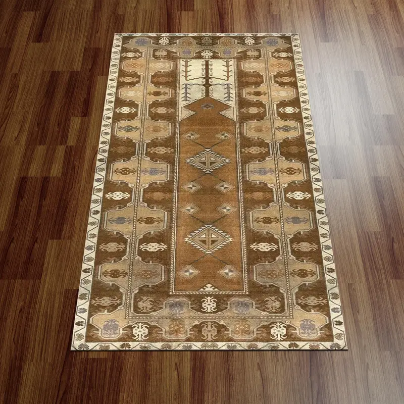 Kahverengi Bej Türk Vintage Desen Baskılı Geometrik Seccade