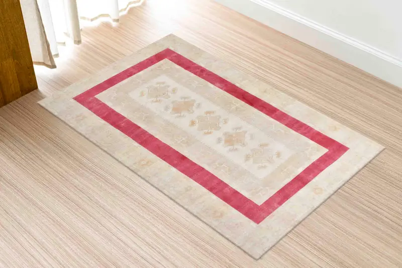 Soft Bej, Kahve, Kırmızı Tonlarında Geometrik Aztek Vintage Türk Baskılı Halı
