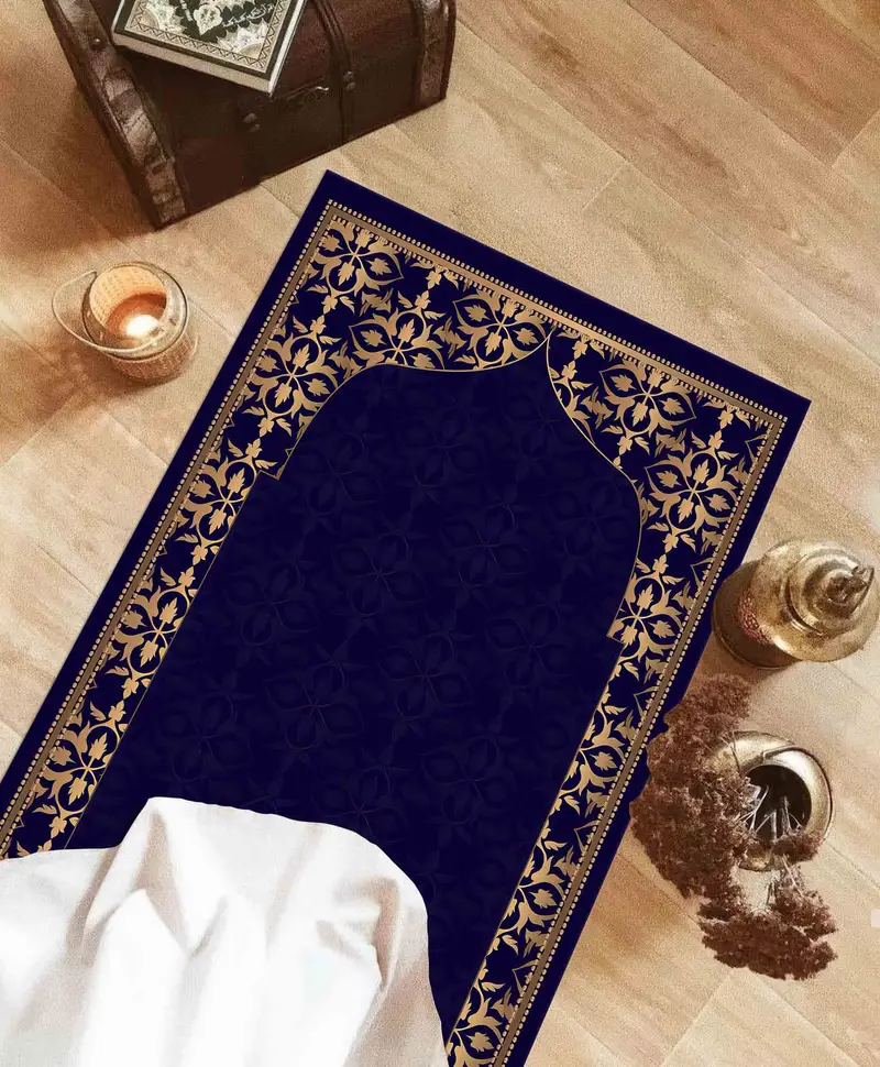 Lacivert & Altın Baskılı Seccade: Manevi Zarafet