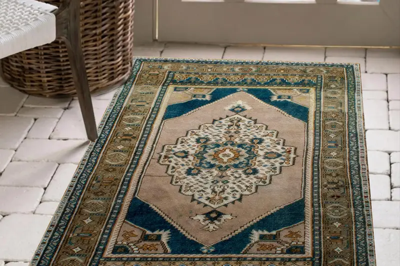 Madalyon Desenli Vintage Türk Baskılı Halı - Etnik Ev Dekoru