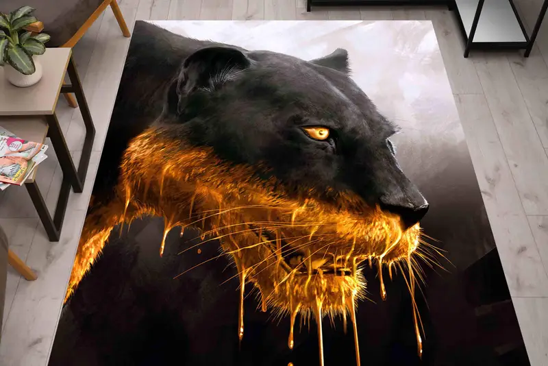 Panther Print Çiftlik Evi Halısı, Modern Hayvan Tasarımı, Siyah Büyük Kedi