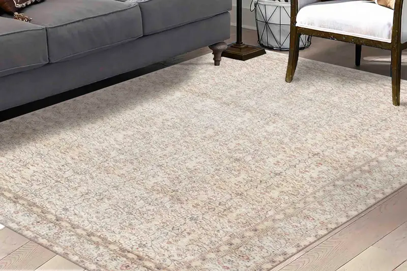 Yumuşak Tonlarda Çiçek Desenli Vintage Türk Baskılı Halı