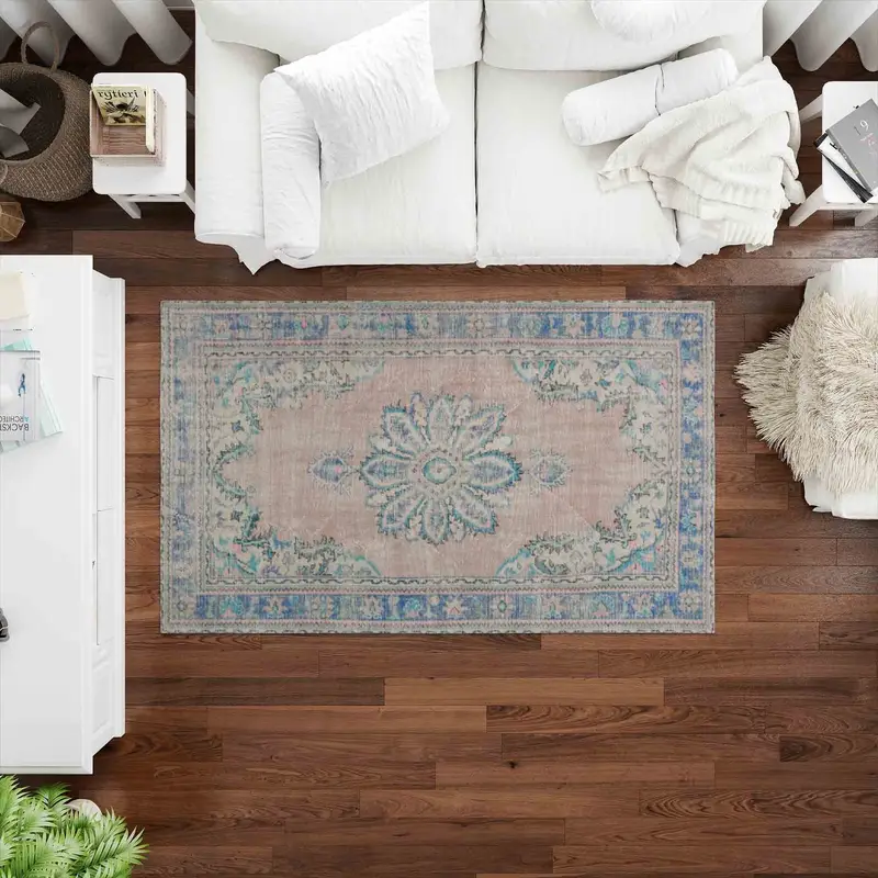 Bej & Mavi Vintage Türk Baskılı Halı, Modern Ev Vurgusu