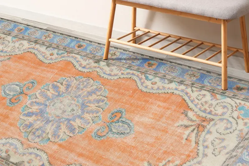 Vintage Türk Madalyonu: Yumuşak, Soluk Tonlarda Baskılı Halı