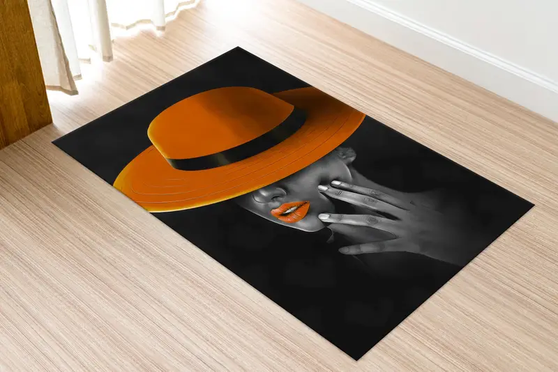 Siyah ve Turuncu Baskılı Halı - Modern Lüks Tasarım