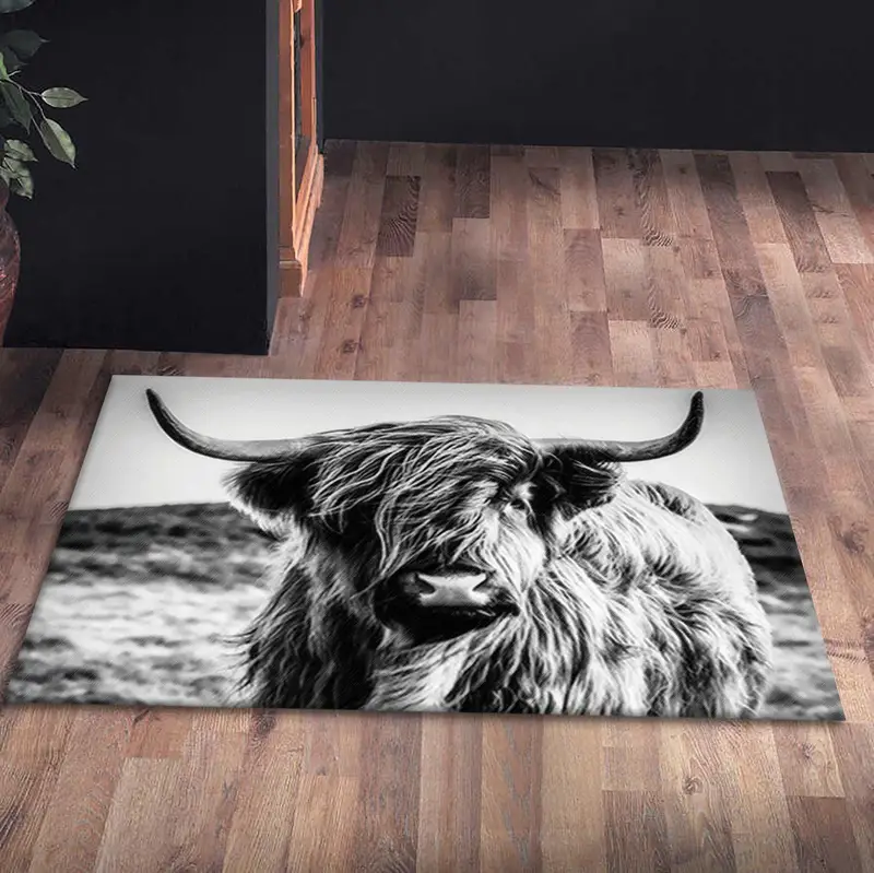 Man Cave için İskoç İnek Siyah Beyaz Modern Baskılı Halı