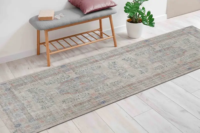 Bej & Turuncu Tropikal Vintage Türk Baskılı Halı
