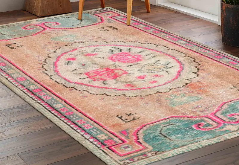 Soluk Soyut Gül Baskılı Halı: Vintage Türk Tasarımı