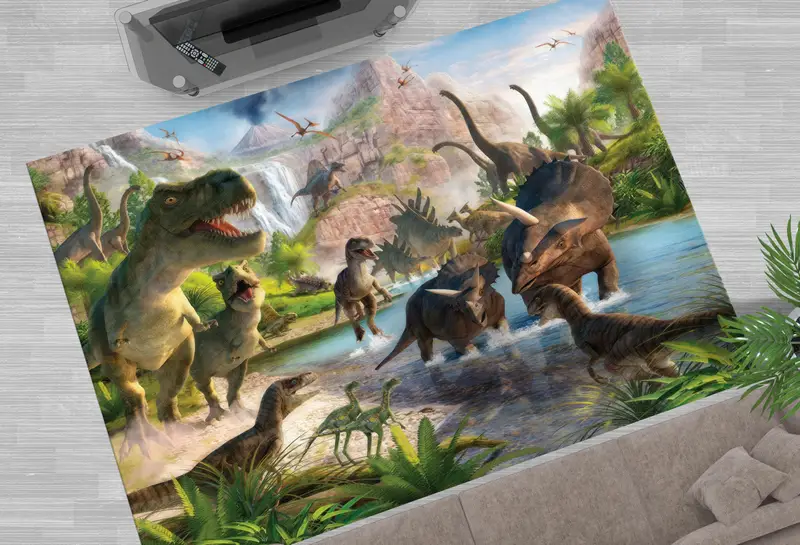 Çocuk Odası Dekoru için Dinozor Macera Baskılı Halı