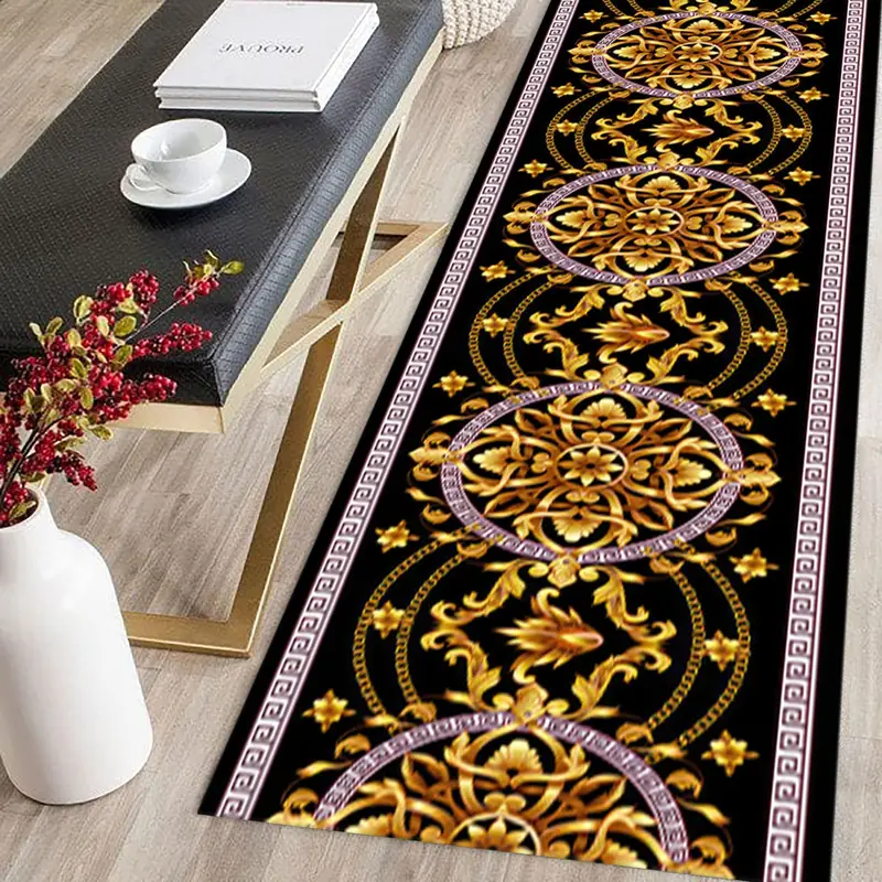 Siyah ve Altın Modern Baskılı Halı: Lüks ve Trendy Tasarım