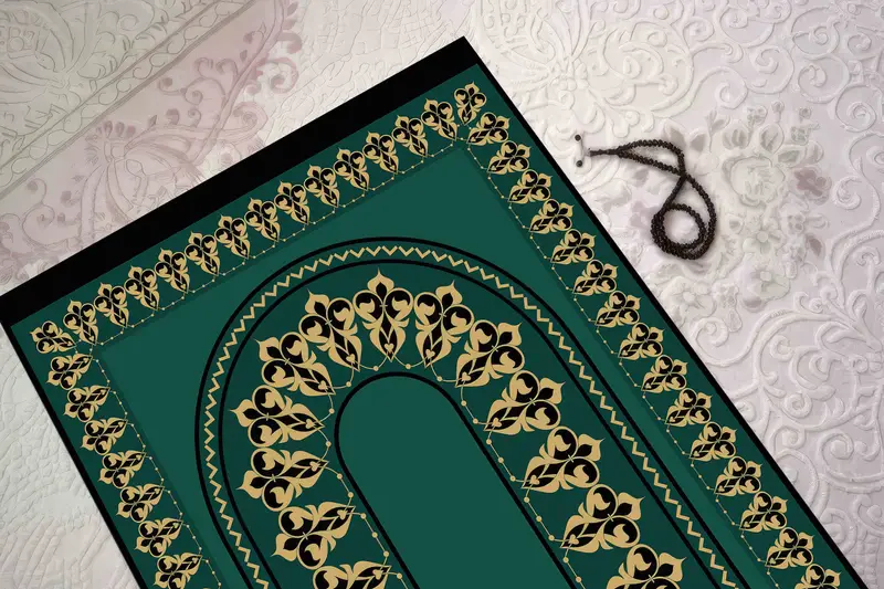 Kutsal Yeşil ve Sarı Desenli Manevi Seccade