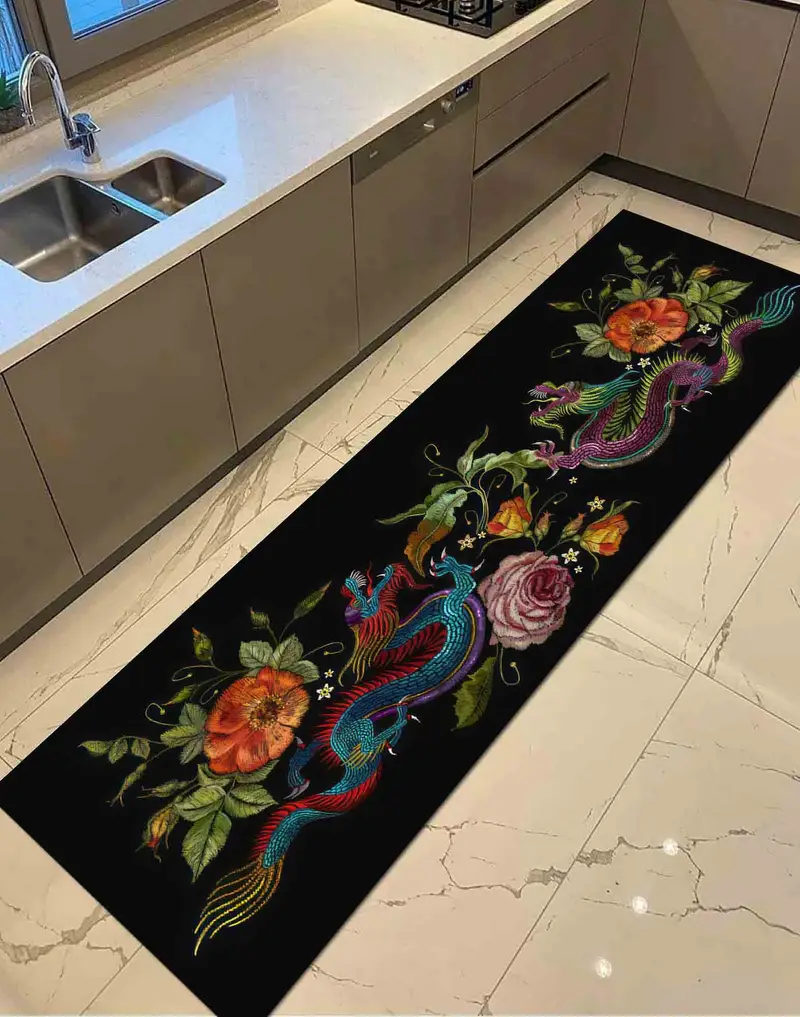 Dragon Majesty Baskılı Halı: Modern, Trendy Japon Çiçek Soyut
