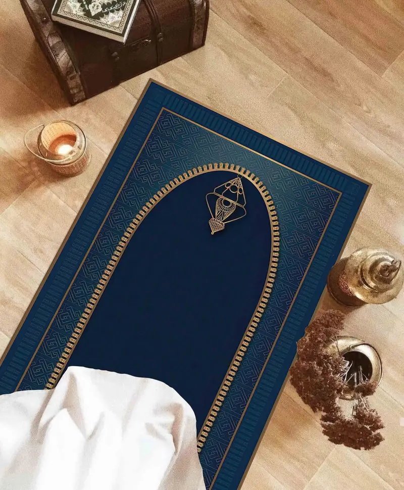 Lacivert Baskılı Seccade, Altın Vurmalı, Manevi İbadet