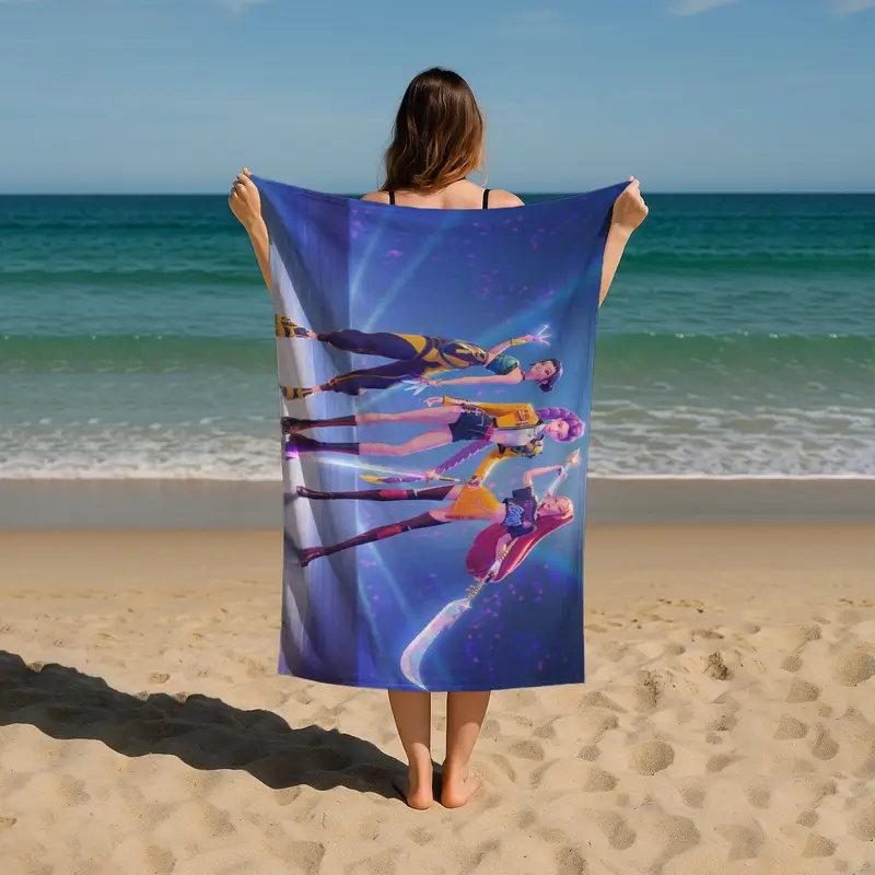 Anime Warrior Girls Plaj Havlusu - Kadınlar ve Gençler için Özel Kpop Fantasy Heroine Havlu, Anime Severler için Benzersiz Renkli Hediye