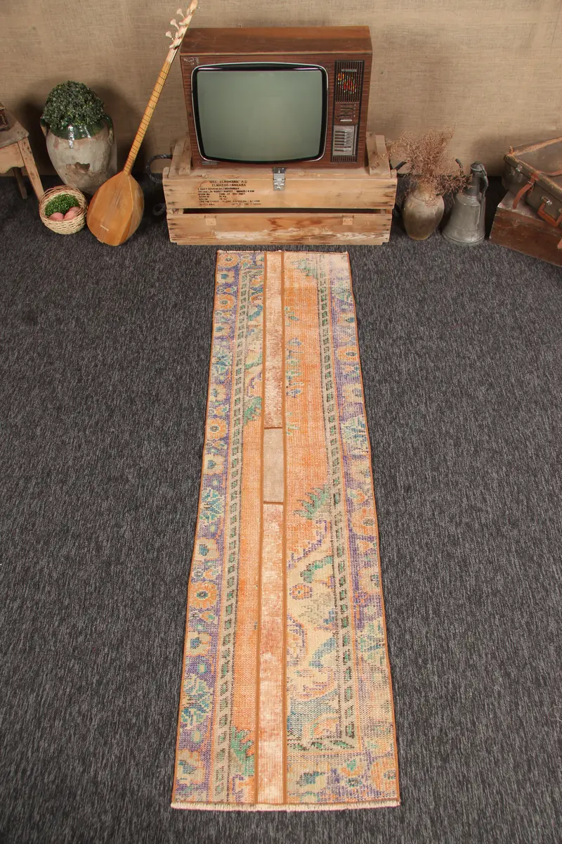 Vintage Türk Halısı 1.9x7.2 ft (59x220 cm), Patchwork Turuncu Halı