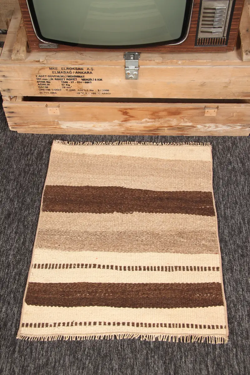 2.1x2.5 ft Halı, Türk Vintage Halı, Kilim Bej Çizgili Halı